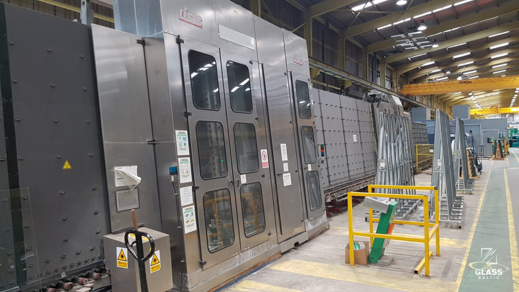 Stock reference: 30026 Year of production: 1997 Maximum working width 2200 mm Minimum glass size 280 x 150 mm Glass thickness 3 – 16 mm Max. working speed 7 m/min (by inverter) Washing machine consists of: Condition: completely overhauled, as new, good working order |