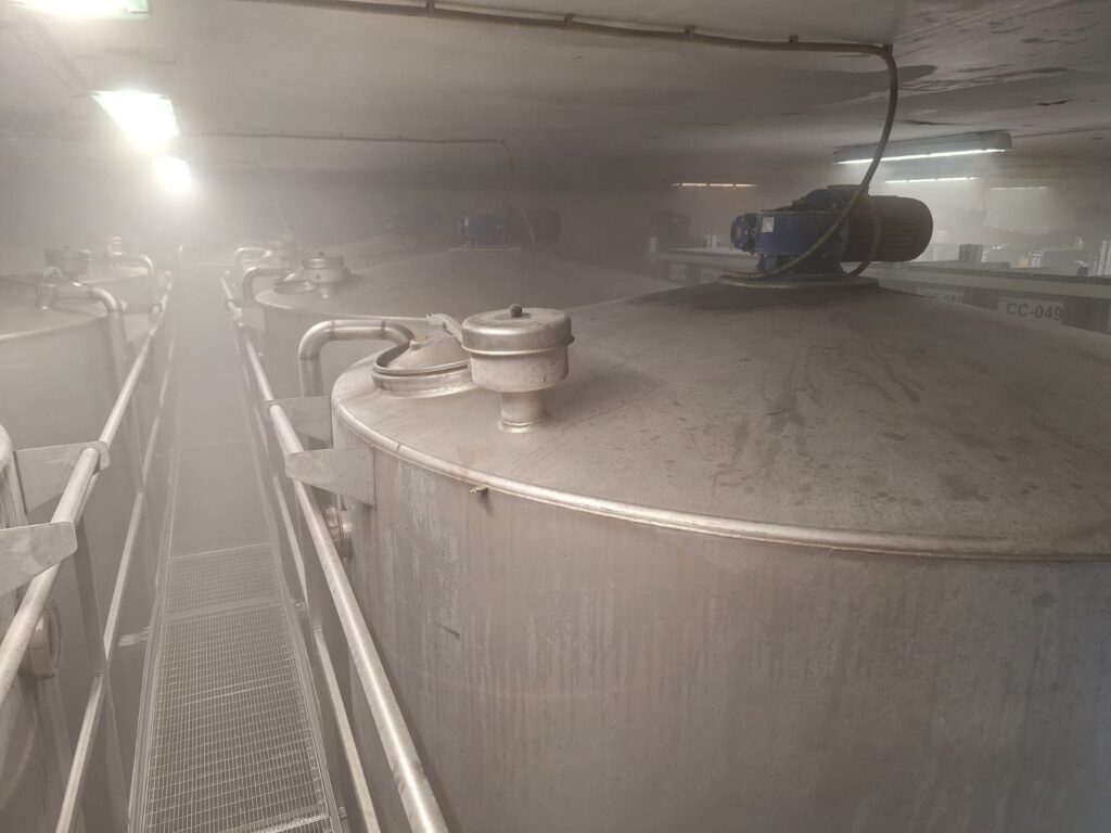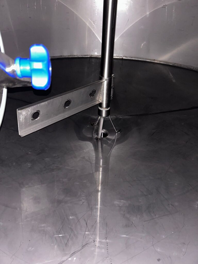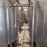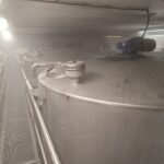 Number 33 – 220-hectare stainless steel tanks, standing on legs with a conical bottom, motorized agitator, sampling valve, sight glass, loading pipe, dipstick valve, walkway, and 1 stainless steel ladder.